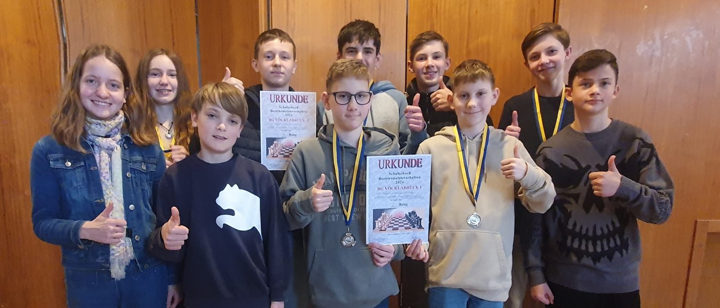 Nach einem spannenden Turnierverlauf konnte sich unsere erste Mannschaft mit Anna Emhofer (4B), Lorenz Hollerweger (4E), Jonah Manglkrammer (4F), Jakob Offenbecher (4D) und Julian Hollerweger (4E) im Finish gegen starke Gegner überlegen durchsetzen. Letztlich fehlten nur 0,5 Punkte auf den Bezirksmeistertitel – herzliche Gratulation zum 2. Platz.