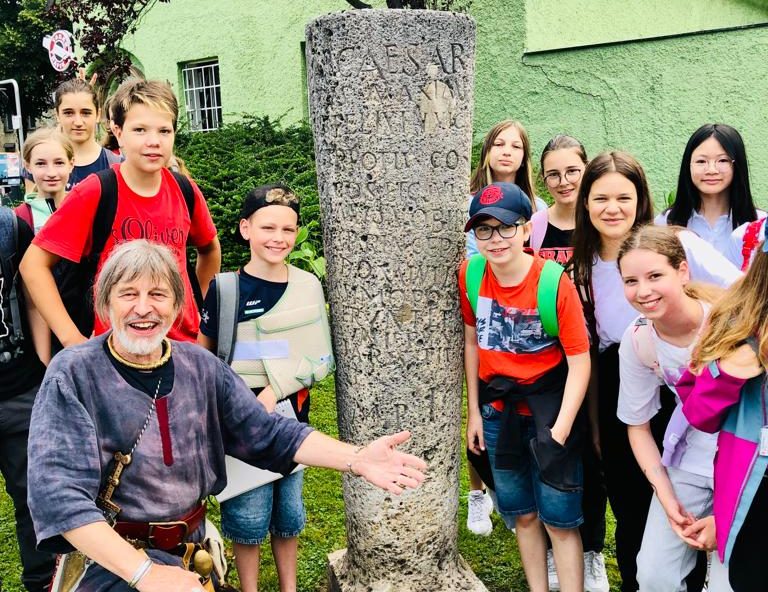 Die mensis Maii discipuli discipulaeque ex classibus 5A et 5C in oppido, cui nomen Ovilava est, pulchrum tempus egerunt… (Für diejenigen, die erst Latein lernen oder gerade dabei sind, folgt eine Übersetzung: An einem Tag im Monat Mai verbrachten die Schüler/innen der 5A und 5C eine schöne Zeit in der Stadt Wels…) Mit einer Führung…