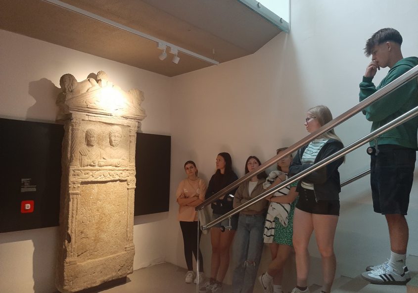 Gemeinsam unternahmen die 6B und 7A Klasse einen Ausflug ins äußerst modern gestaltete Römermuseum Lauriacum. Dort konnte man viel über den Alltag in einem römischen Legionslager, von der Ausbildung der Soldaten bis hin zu ihrem Speiseplan, erfahren. Natürlich durften auch die Lateinkenntnisse bei originalen Inschriften unter Beweis gestellt werden! Summa summarum: Dies pulcherrimus!