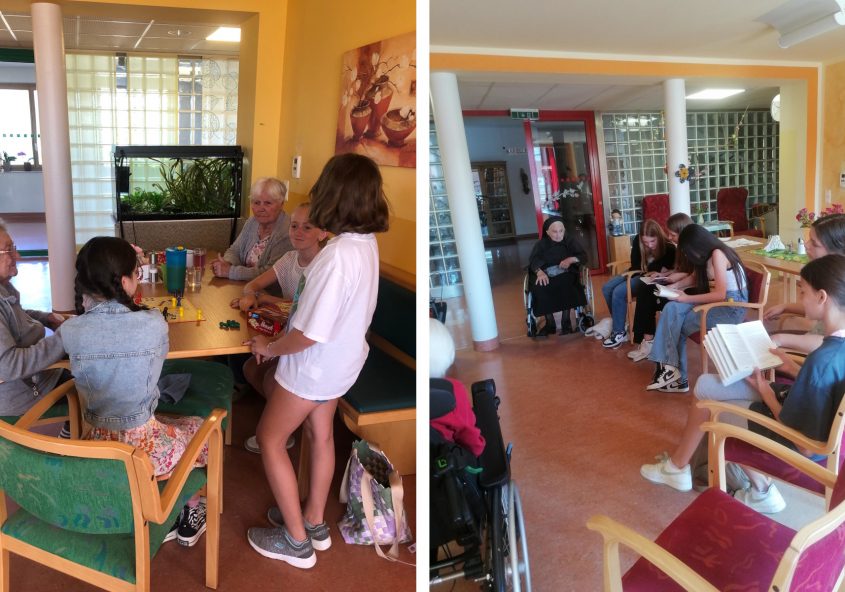 Am Montag, 26.06.2023, statteten wir, die 2A und 2C Klasse, dem Altenheim St. Klara einen Besuch ab, um den Seniorinnen und Senioren einen abwechslungsreichen und lustigen Tag zu bereiten. Es wurde viel gelacht, gespielt und erzählt. So verging die Zeit schnell und alle hatten Spaß beim Vorlesen und Spielen. Das Highlight des Ausfluges waren die…