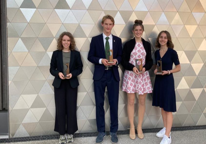 Für ihre vorwissenschaftliche Arbeit mit dem Titel „Auswirkungen von verschiedenen Musikrichtungen auf das Wohlbefinden und die Legeleistung von Hühnern“ wurde Sarah Auer aus der 8B mit dem 1. Preis des Dr. Hans Riegel Fachpreises für Biologie ausgezeichnet. Dieser renommierte Fachpreise umfasst eine Trophäe, ein Preisgeld von 600 Euro (erster Platz), 400 Euro (zweiter Platz), 200…