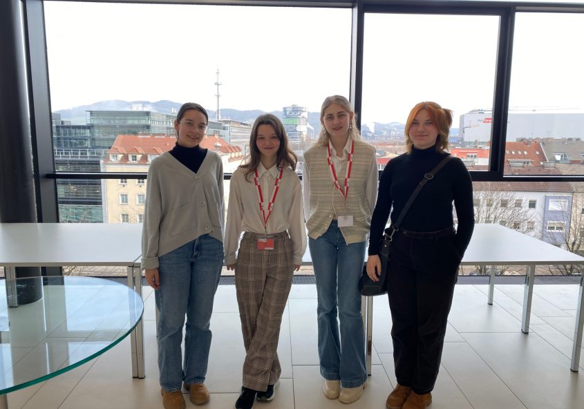 Am Mittwoch, 6.3.2025, machte sich ein olympisches Team aus der 7B auf den Weg nach Linz, um sich einem Text aus der Exilliteratur zu widmen. Von über 60 TeilnehmerInnen erreichte Gabriel Stanek den großartigen zweiten Platz. Mit ihm jubelten seine MitstreiterInnen Johanna S., Jonathan G. und Julius G., sowie Frau Prof. Spatt. Gratulamur tibi! Weiter…