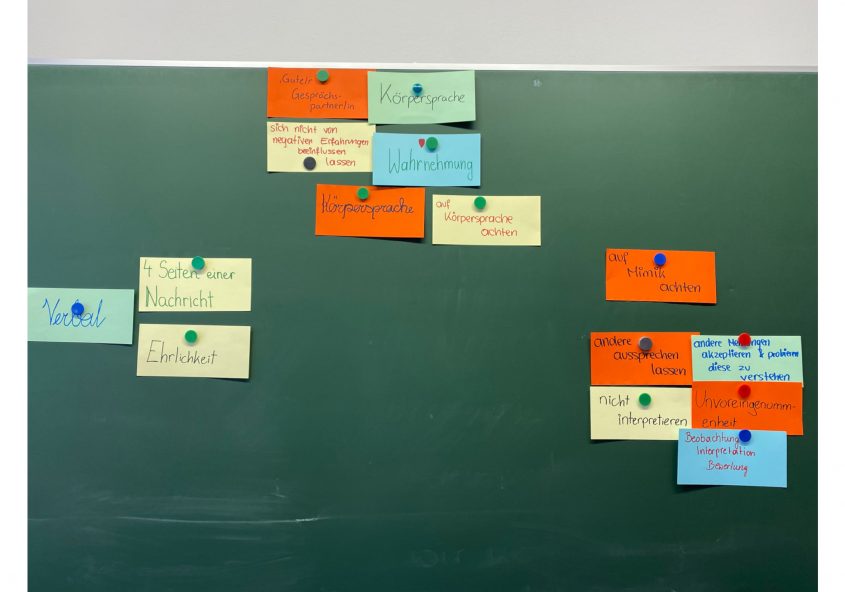 In unserem Wahlpflichtfach Konfliktmanagement, das die Schüler*innen der 6. Klassen besuchen können, beschäftigten wir uns mit den Fragen: „Was macht Kommunikation zu ‚gelungener‘ Kommunikation? Wie kann ich Konflikte ansprechen ohne den anderen mit Vorwürfen zu überhäufen und dennoch meine Meinung zu vertreten? Wie kann ich dafür eine gute Lösung finden?“ Unsere Schüler*innen beschäftigten sich mit…