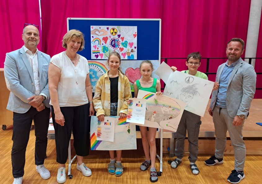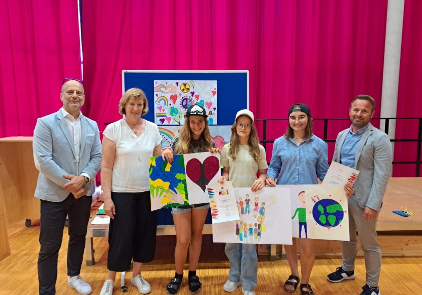 Siegerehrung des Lions FriedensplakatwettbewerbsAlle 2. Klassen unserer Schule nahmen heuer am Zeichenwettbewerb zum Thema „Mut zum Träumen“ teil. Diese Woche fand im Festsaal die Siegerehrung statt. Wir gratulieren herzlich allen Klassen- und besonders unseren Schulsiegern.