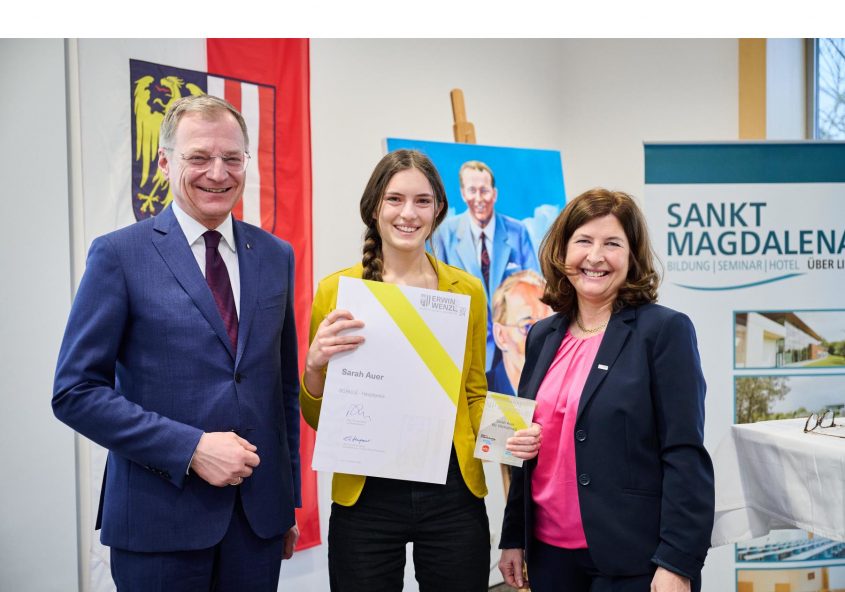 Erwin Wenzl Preis für Sarah AuerMit ihrer vorwissenschaftlichen Arbeit zum Thema „Auswirkungen von verschiedenen Musikrichtungen auf das Verhalten und die Legeleistung von Hühnern“ zeigte Sarah Auer einmal mehr, wie wichtig es ist, selbst gestellte Fragestellungen im eigenen Leben zu verfolgen. Sie untersuchte im Rahmen ihrer VWA das Verhalten und die Legeleistung ihrer Hühner bei klassischer, moderner bzw. gar keiner Musik.…