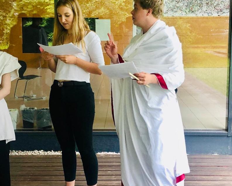 Dabei durfte auch die entsprechende Unterhaltung nicht fehlen: eine Schauspielergruppe der 7C führte die Groteske Pyramus und Thisbe in lateinischer Sprache auf!