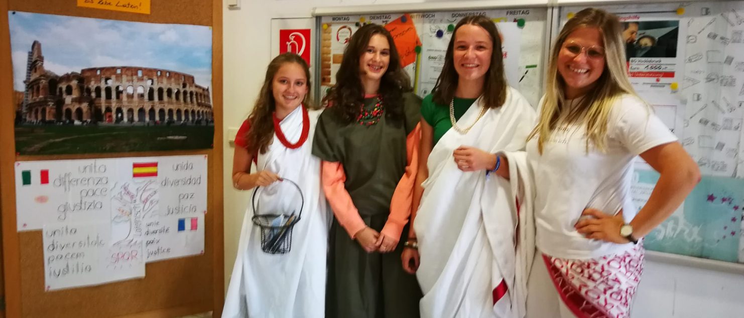 Über den ganzen Tag gab es verschiedene Aktivitäten: es wurden Filmbeiträge in der Muttersprache einzelner Schüler im Festsaal gezeigt, Lesezeichen in verschiedenen Sprachen verteilt, Plakate und Bildmaterial zum Thema „Sprache“ ausgestellt. Außerdem wurden die verschiedenen Länder, Traditionen und Kulturen durch ihre landestypische Kleidung zum Ausdruck gebracht. Abgerundet wurde dieser Tag mit einem multikulturellen Kuchenbuffet mit süßen Köstlichkeiten aus der ganzen Welt, das unsere Schülerinnen und Schüler der achten Klassen organisierten. So wurde dieser Tag der Sprache zu einem kleinen, schulinternen Event.