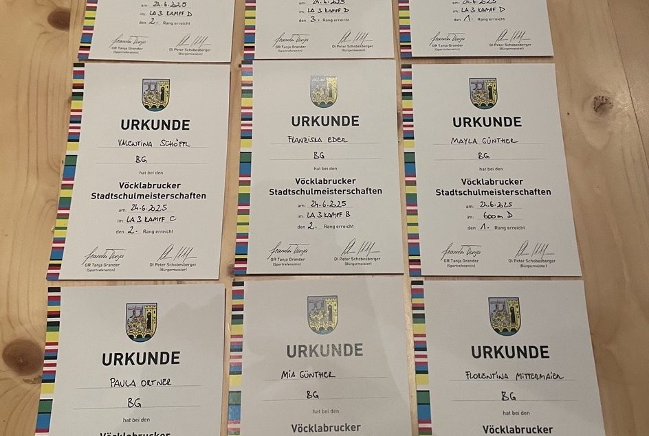 Am 24.6.2025 nahm ein großes Team von hoch motivierten Leichtathlet*innen an den Stadtschulmeisterschaften im Stadion teil. Der Einsatz hatte sich gelohnt. Viele TOP Platzierungen konnten in den unterschiedlichen Bewerben erzielt werden – 9 davon erreichten sogar den 1. bis 3. Rang! Wir freuen uns mit euch!