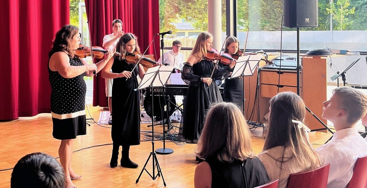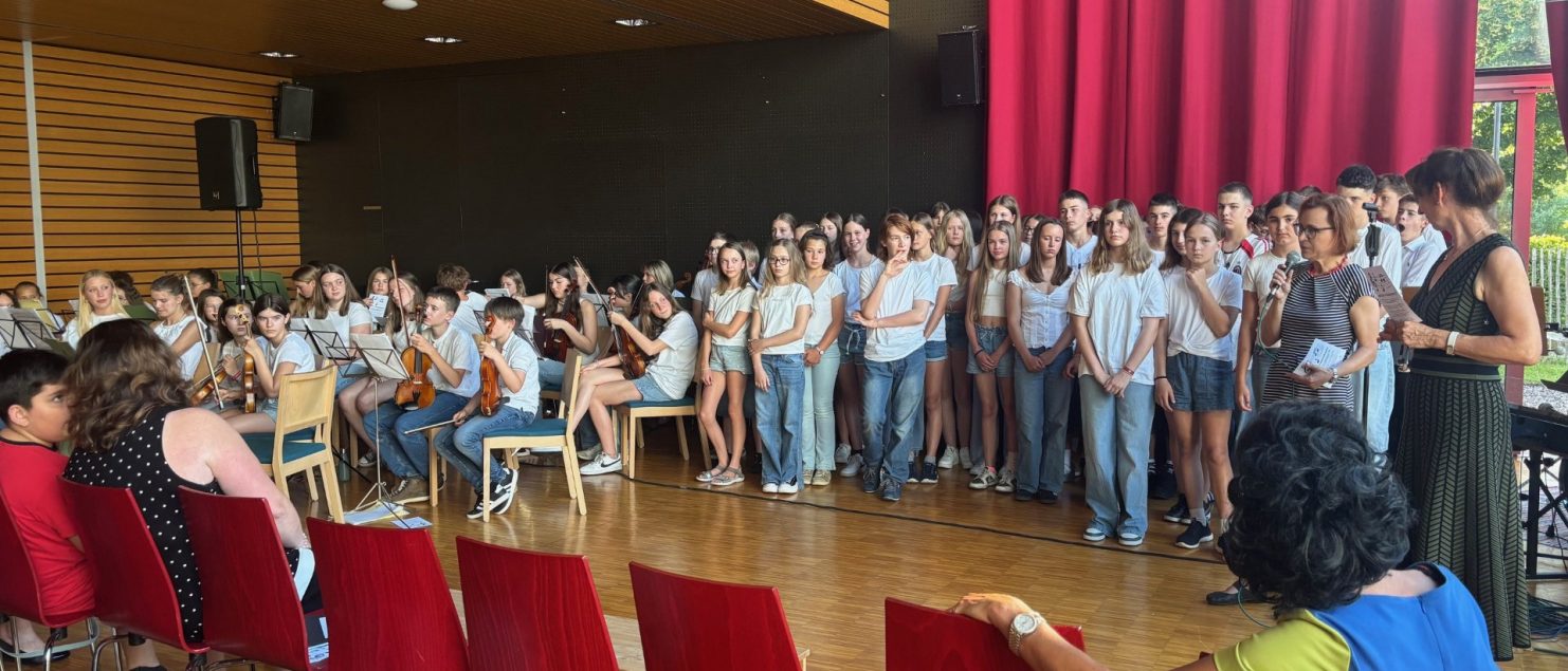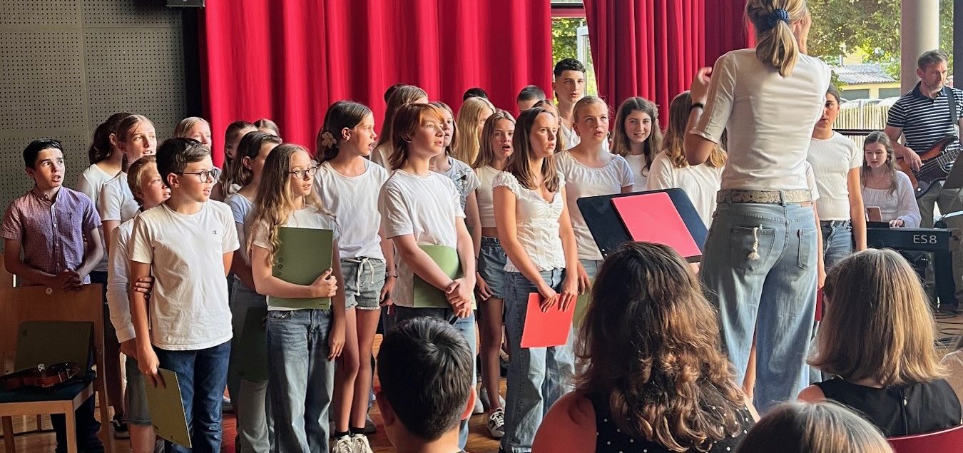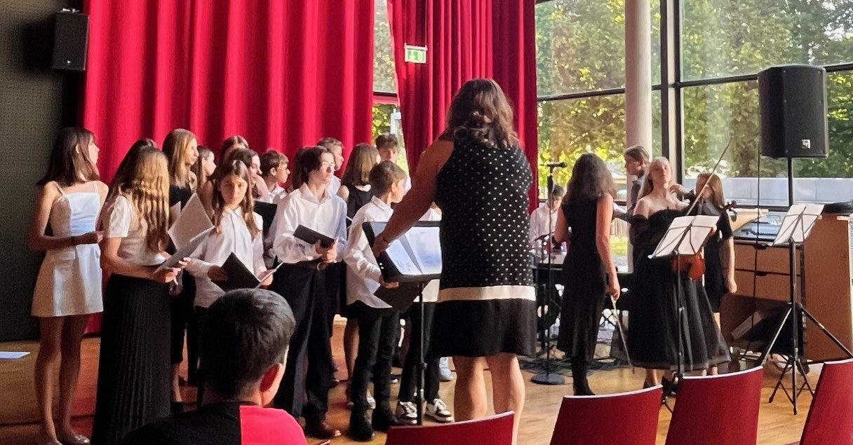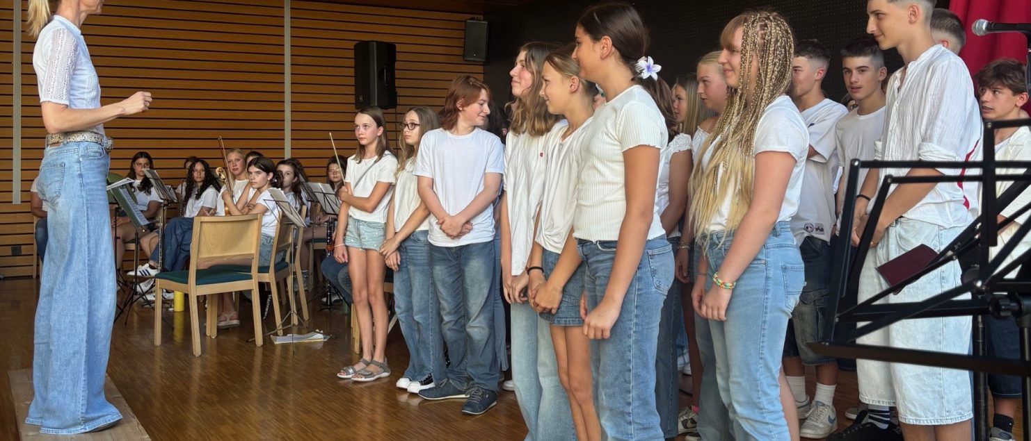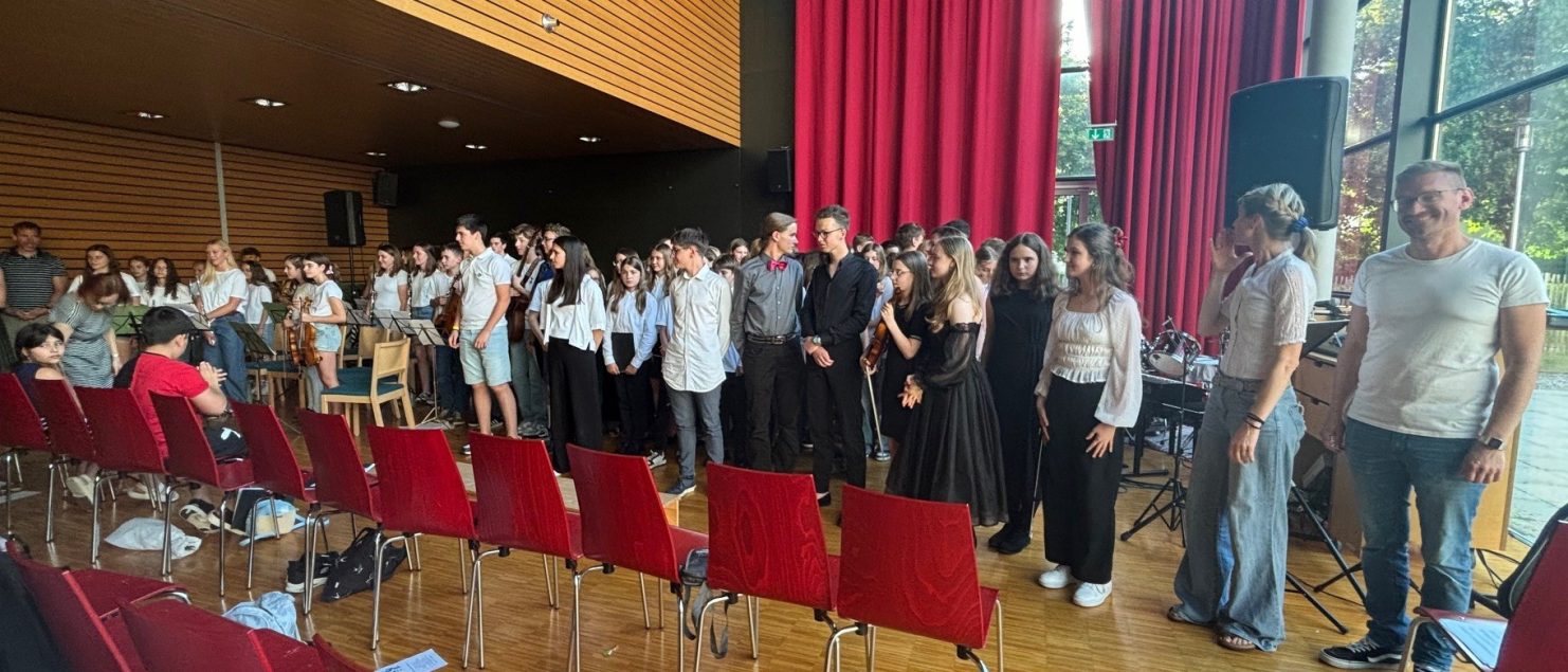In einem bis auf den letzten Platz ausgefüllten Festsaal fand am 17. Juni ein Konzertabend der besonderen Art statt, zu dem das BG Vöcklabruck und das Gymnasium Karlsbad eingeladen haben. Das ganze Schuljahr über wurde getrennt geprobt. Endlich fand dann am Tag des länderübergreifenden Konzertes auch das große Kennenlernen und die gemeinsame Probe aller Musiker*innen statt. Die Schüler*innen beider Gymnasien haben dabei einen einmaligen Konzertabend auf die Beine gestellt, der beweist, dass nicht nur Sprache, sondern vor allem Musik verbindet. Mit Songs von Adele, Michael Jackson, Coldplay und vielen mehr haben die Schüler*innen ein abwechslungsreiches Programm erstellt, das zum Mitsingen und Mitmachen eingeladen hat. Anschließend an das Konzert konnte der gelungene Abend im Schulgarten ausklingen. Viva la Vida!