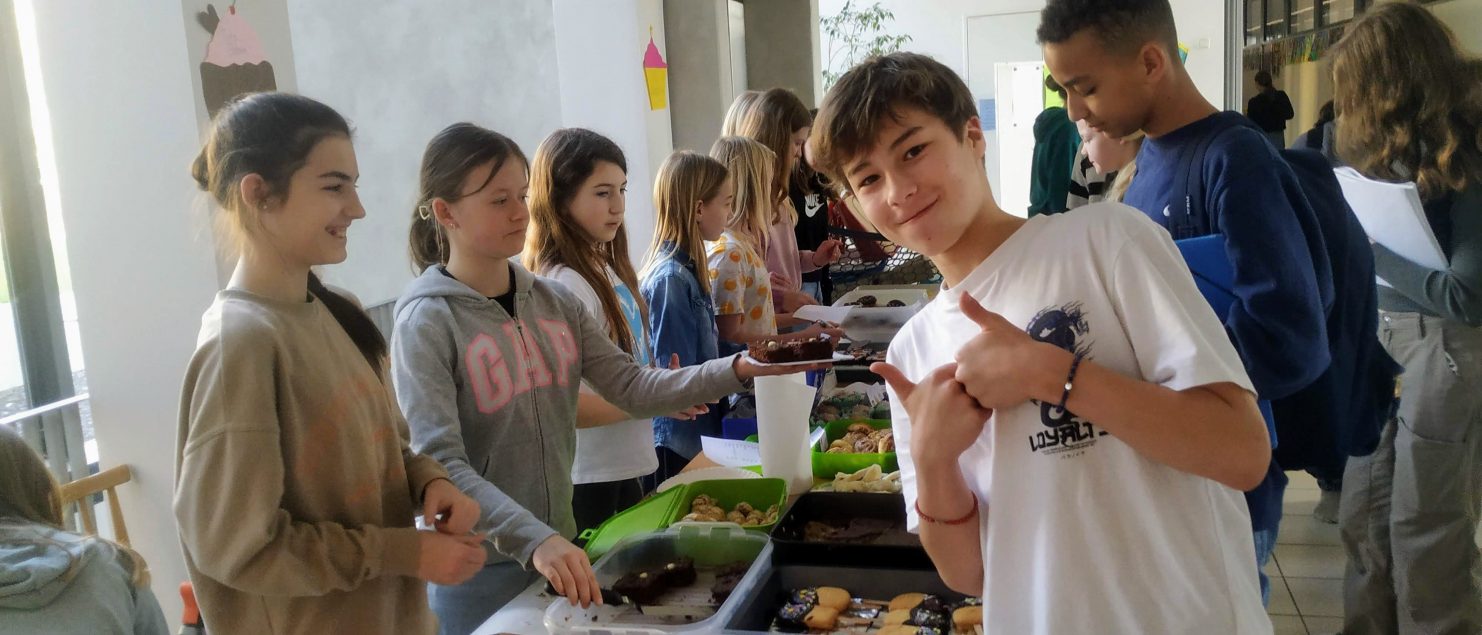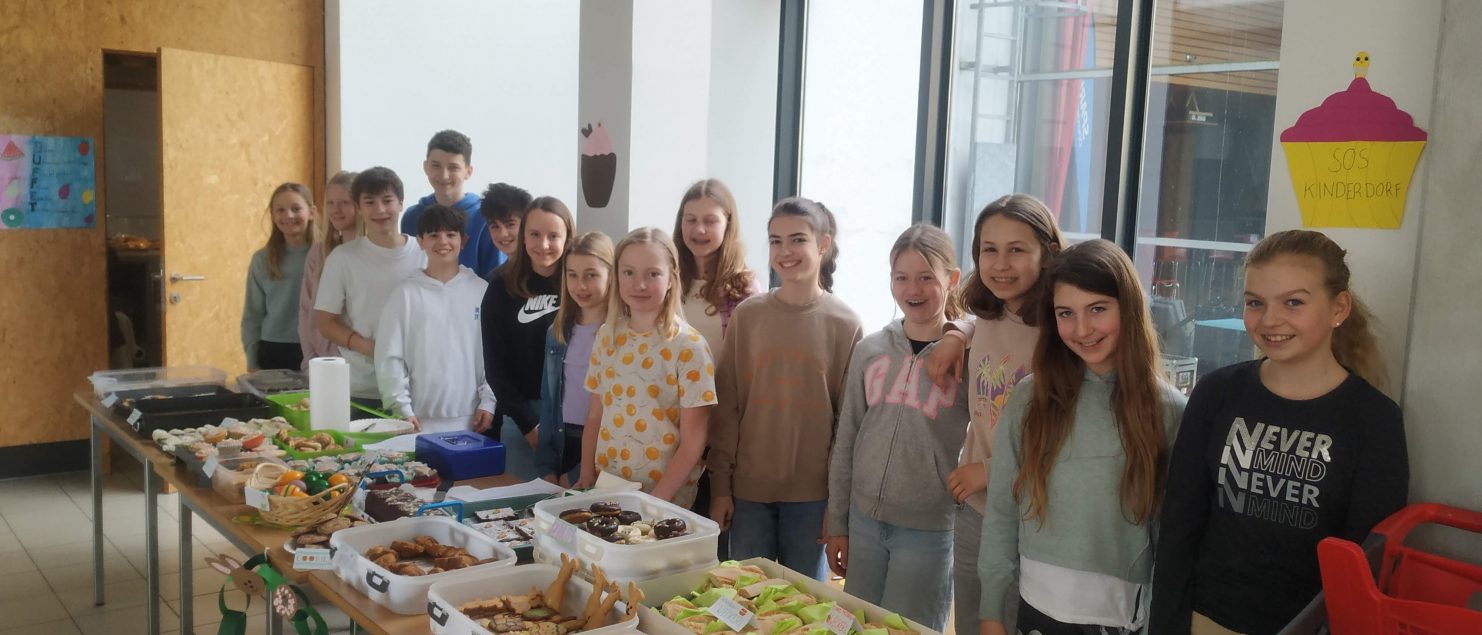 Von der Idee, über die Planung bis zur Durchführung lag fast alles Organisatorische in den Händen unserer Schülerinnen und Schüler. Mit dem Verkauf von ihren Köstlichkeiten konnte die Klasse eine stolze Summe erwirtschaften – ein Teil des Erlöses wird an das SOS Kinderdorf gespendet werden. Wir freuen uns mit euch, dass euch diese Aktion so gut gelungen ist!