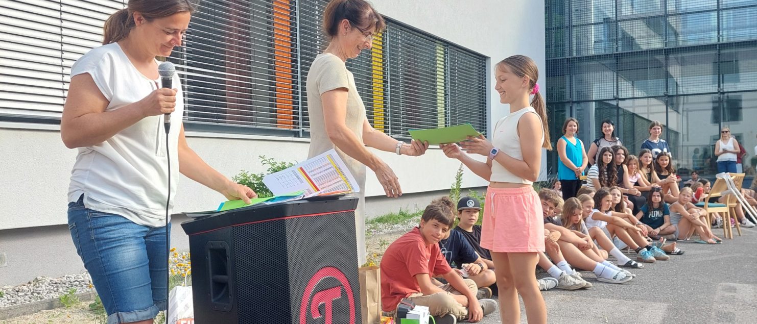 677 Schülerinnen und Schüler von 29 Klassen der 1.-7. Schulstufe liefen insgesamt 7 924 Runden und sammelten so 19 777 € für unsere Schule. Die Siegerehrung fand in der letzten Schulwoche im Schulpark statt.