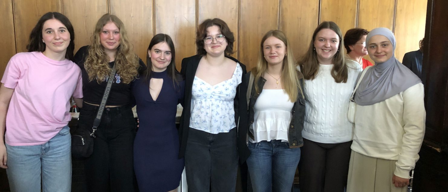 Johanna Schörghuber und Nina Simmer (6A) nahmen am Samstag, den 10. Mai, beim Redewettbewerb des Soroptimist Clubs Traunsee teil. Mit beeindruckenden Reden zum Themenkreis „Frauen und Gewalt“ fesselten sie im Rathaussaal Gmunden ihr Publikum. Neben den Eltern und Frau Prof. Patry-Kiener waren auch mehrere Mitschülerinnen als „Fanclub“ mitgekommen, um den Redewettbewerb mitzuerleben. Es fiel der Jury sichtlich nicht leicht, unter den neun Rednerinnen und vier Rednern die Gewinner*innen zu küren. Nina erhielt den dritten Preis und ist im kommenden Dezember zum Bundeswettbewerb in Wien eingeladen. Wir gratulieren sehr herzlich! Vielen Dank an unsere Rednerinnen für ihr Engagement und dem „Fanclub“ fürs Zuhören und Mitfiebern!