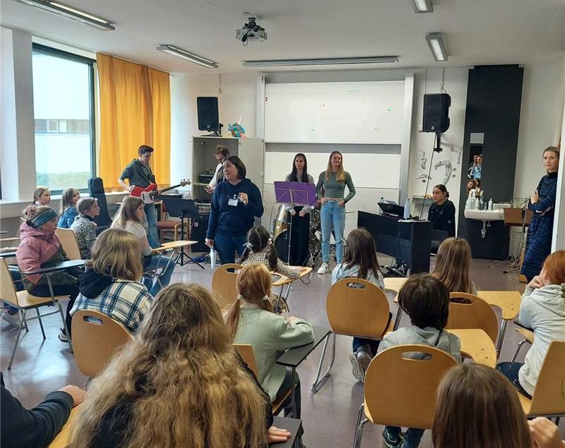 Nach dem Empfang mit Orchester und unserer Frau Direktor hörten die Besucher Sätze in den verschiedenen Fremdsprachen, die bei uns unterrichtet werden, sahen ein englisches Theaterstück und bestaunten Experimente in Physik oder Chemie. Über den Biologiesaal, in welchem auch unsere Schultiere „gestreichelt“ werden konnten, ging es nach der Lösung mathematischer Rätsel zur großen Bibliothek und zur viel beachteten Ausstellung der Kreativfächer und Portfolios. Den Abschluss bildete eine Darbietung unserer Schulband; wer dann noch genügend Kraftreserven hatte, konnte einige Sportstationen ausprobieren.