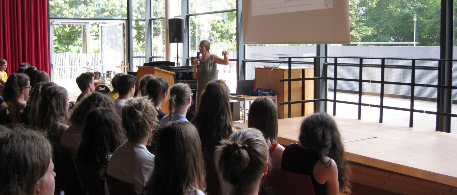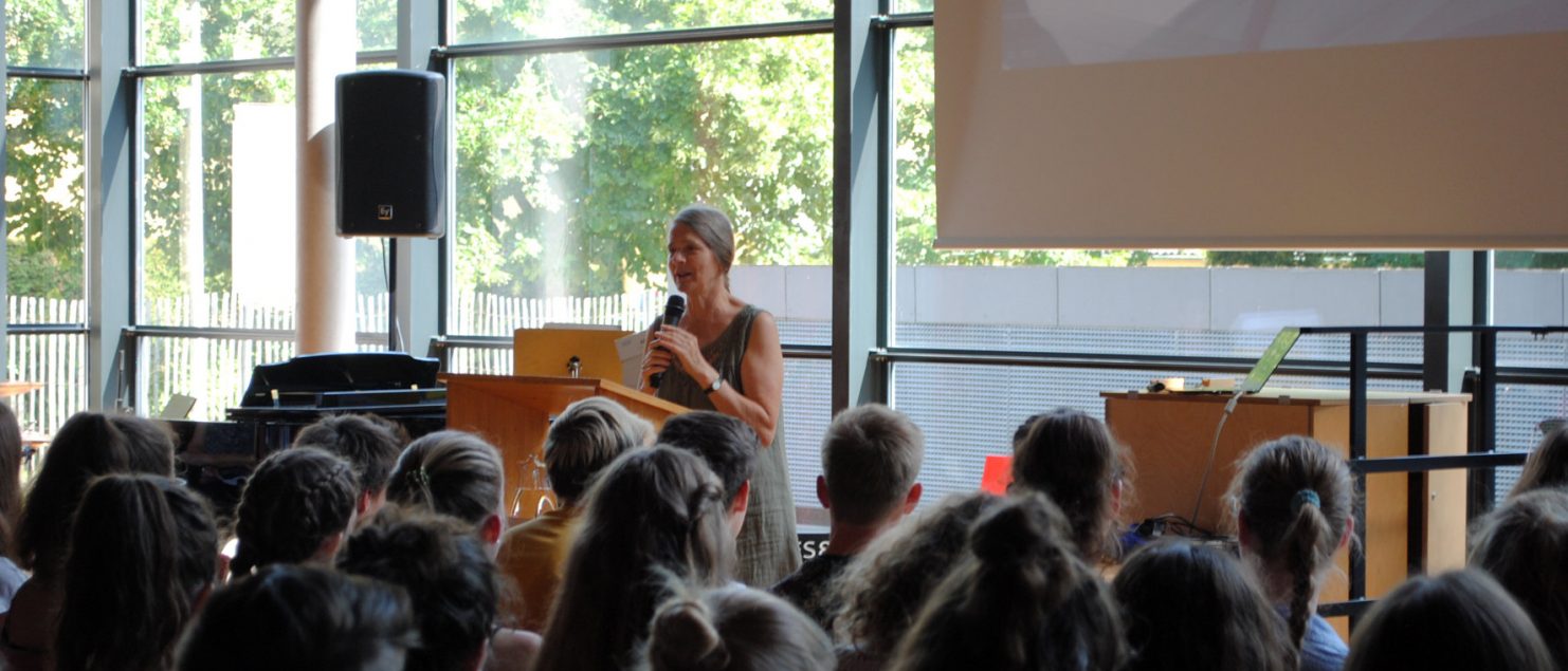 Das waren einige der Fragen, welche die bekannte Klimaforscherin Helga Kromp-Kolb am 27. Juni in beeindruckender Weise in ihrem Vortrag im Festsaal unserer Schule behandelte. 230 Schülerinnen und Schüler der Oberstufe folgten gespannt ihren interessanten Ausführungen und beteiligten sich rege an der Diskussion. Längstens seit diesem Vortrag ist klar: Jeder Einzelne kann und muss einen Beitrag zum Klimawandel leisten!