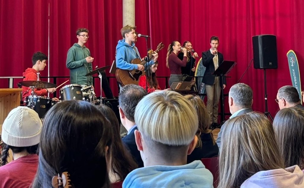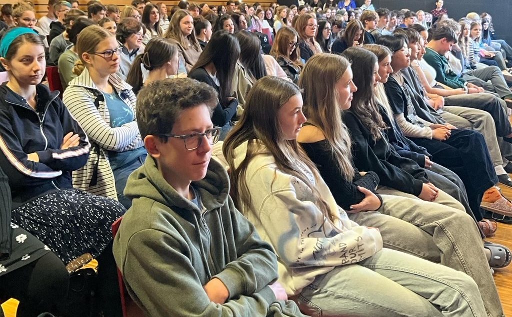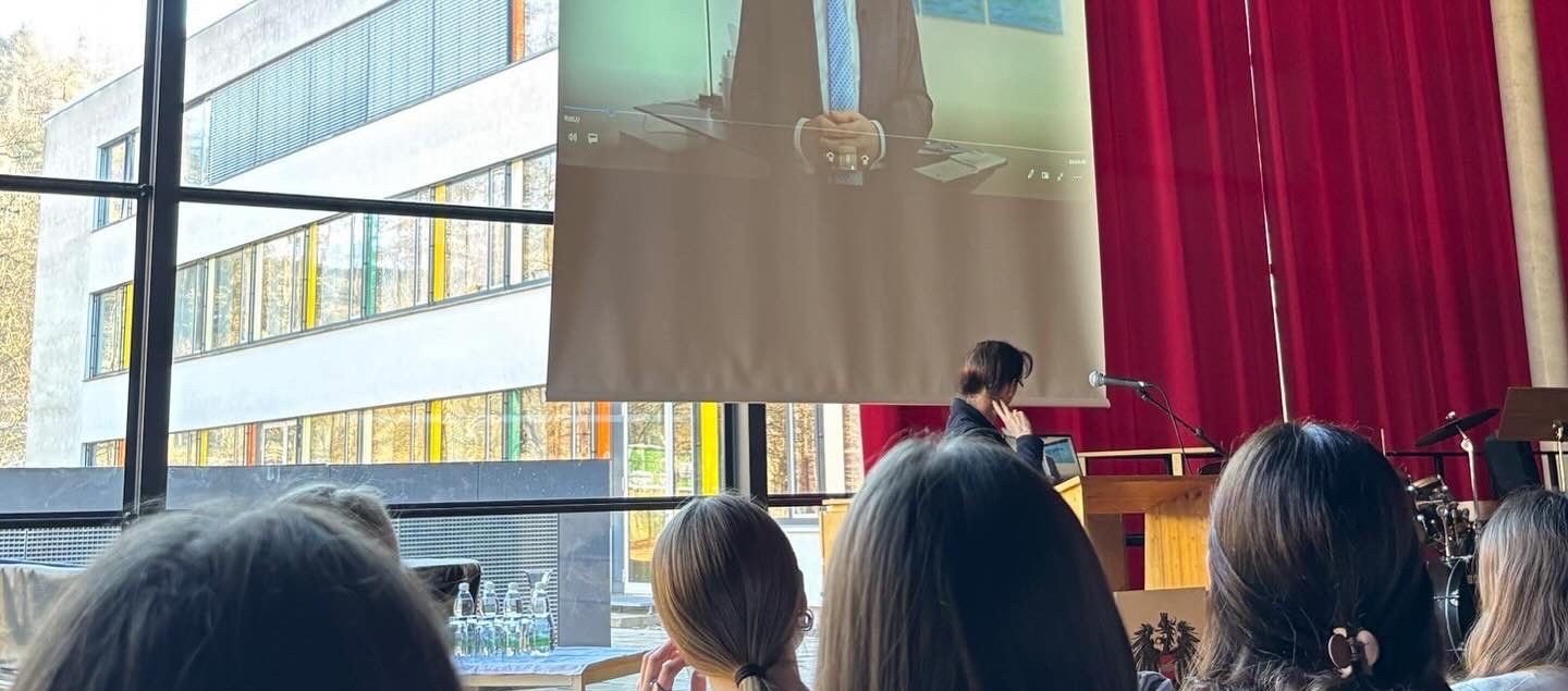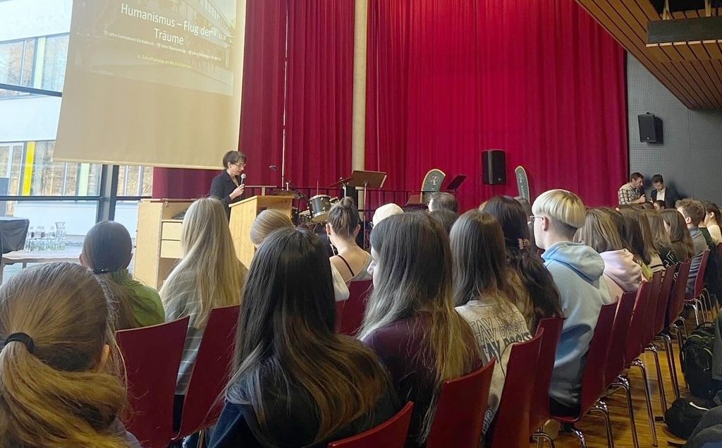 Nach dem Eröffnungsbeitrag unserer Schulband, die den aktuellen Popsong „Die with a Smile“ präsentierte, hörten die Schüler*innen den Impulsvorträgen zu den Themen „Aus Träumen und Krisen geboren. Europas Identität im 21. Jhdt.“, „Vom Fliegenglas zum freien Flug – Humanismus in der Bildung“ und „Humanismus. Der Traum vom Menschsein“ zu.